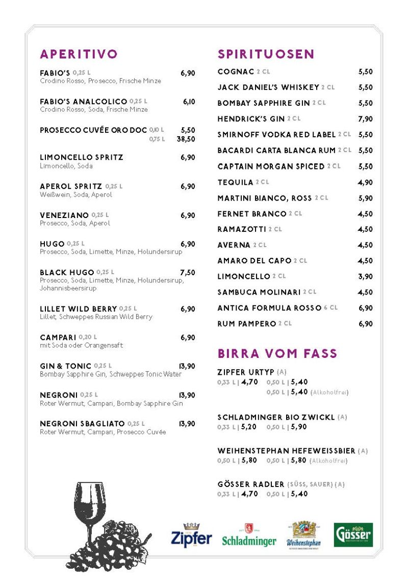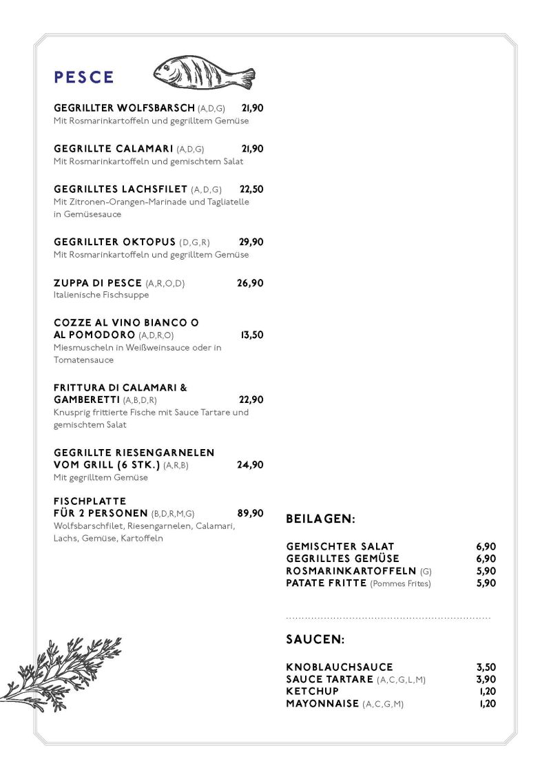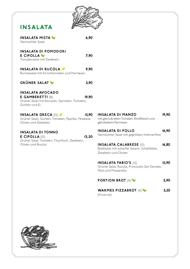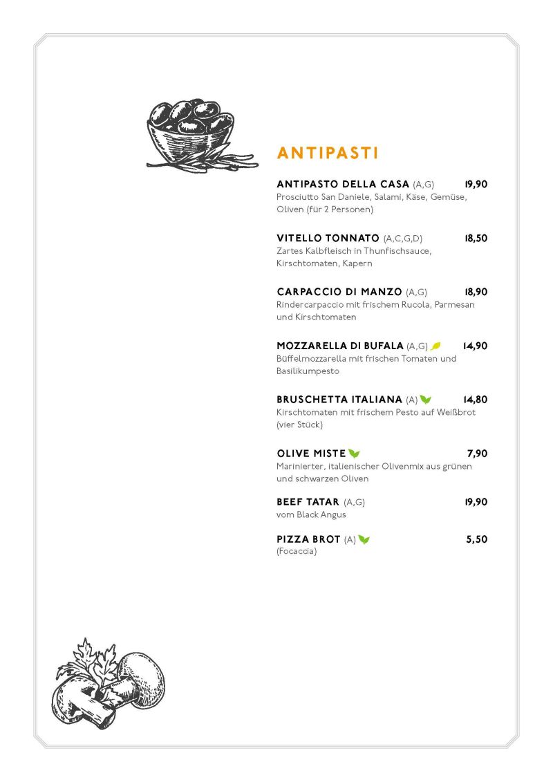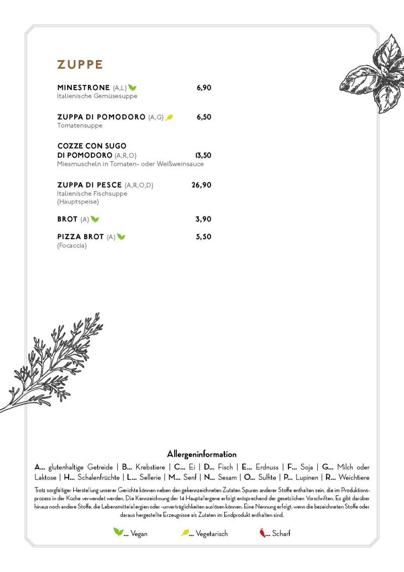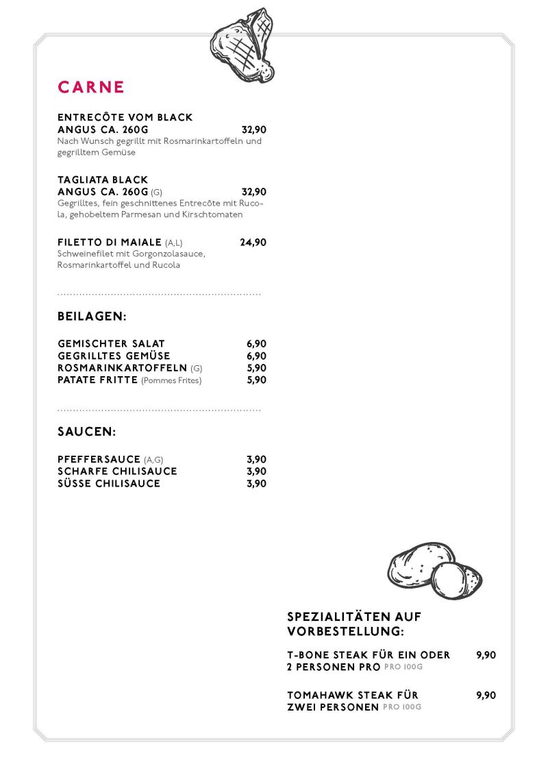 • Speisekarte